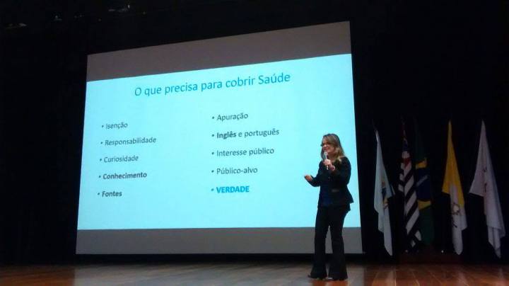 A jornalista Camila Neuman apresentou questões essenciais para a atuação em coberturas relacionadas à saúde, como curiosidades, fontes, apuração e conhecimentos necessários e contou sobre o entusiasmo ao escrever sobre epidemias. “Eu encaro as epidemias como as melhores matérias de saúde, mas também como as mais trabalhosas por haver a necessidade de falar com muita gente”, comentou.
