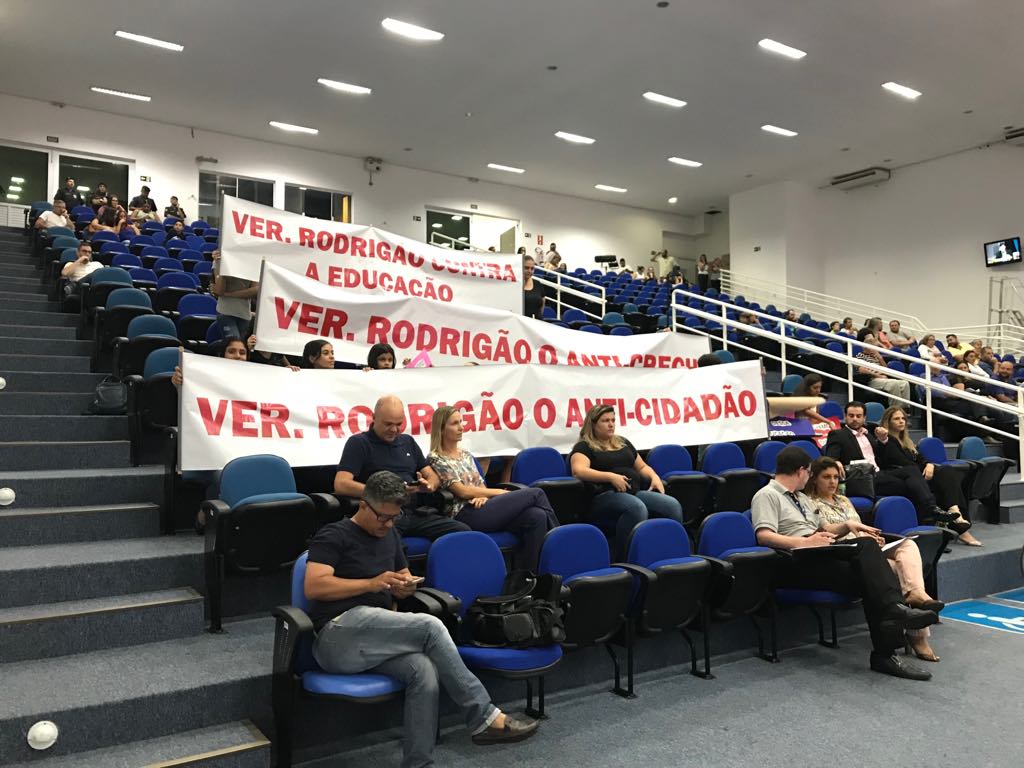 Durante a CPI, houve protesto dos trabalhadores da creche, que ficaram indignados com o resultado da votação e com a postura de alguns vereadores. “Eu fico incomodada, porque eu faço meu serviço direito e a maioria dos vereadores fala uma coisa e faz outra. Durante a votação, eles falam que são favoráveis ao afastamento do prefeito, mas no dia a dia não fazem nada para nos ajudar”, declara Leia Machado, 50 anos, trabalhadora da creche CECOIN Santo Antonio e uma das organizadoras do protesto.