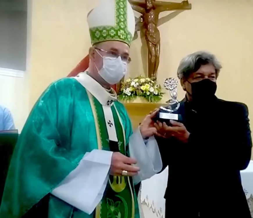 Foram entregues na noite desta sexta-feira (12) os Prêmios de Comunicação da CNBB para os ganhadores da Arquidiocese de Campinas. O jornalista Álvaro da Silva Júnior, ex-aluno da Faculdade de Jornalismo da PUC-Campinas, recebeu das mãos de Dom João Inácio Müller, Arcebispo de Campinas, o Prêmio Margarida de Prata na categoria curta metragem, pelo documentário “Ser negro — além das quatro linhas”. O trabalho foi desenvolvido por Álvaro e pelos alunos Guilherme Ferraz e Daniel Salcedo como Trabalho de Conclusão de Curso (TCC) em 2020 e teve a orientação do professor Carlos Gilberto Roldão. A entrega do prêmio foi realizada durante a Santa Missa presidida pelo Arcebispo.