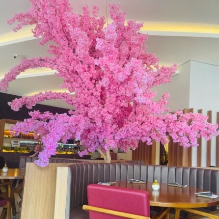O ambiente é tranquilo e sempre cheio, decorado com árvores de cerejeiras que criam uma atmosfera oriental para aclimatar ainda mais a refeição. O local é perfeito para curtir um tempo com a família ou amigos no final de semana.