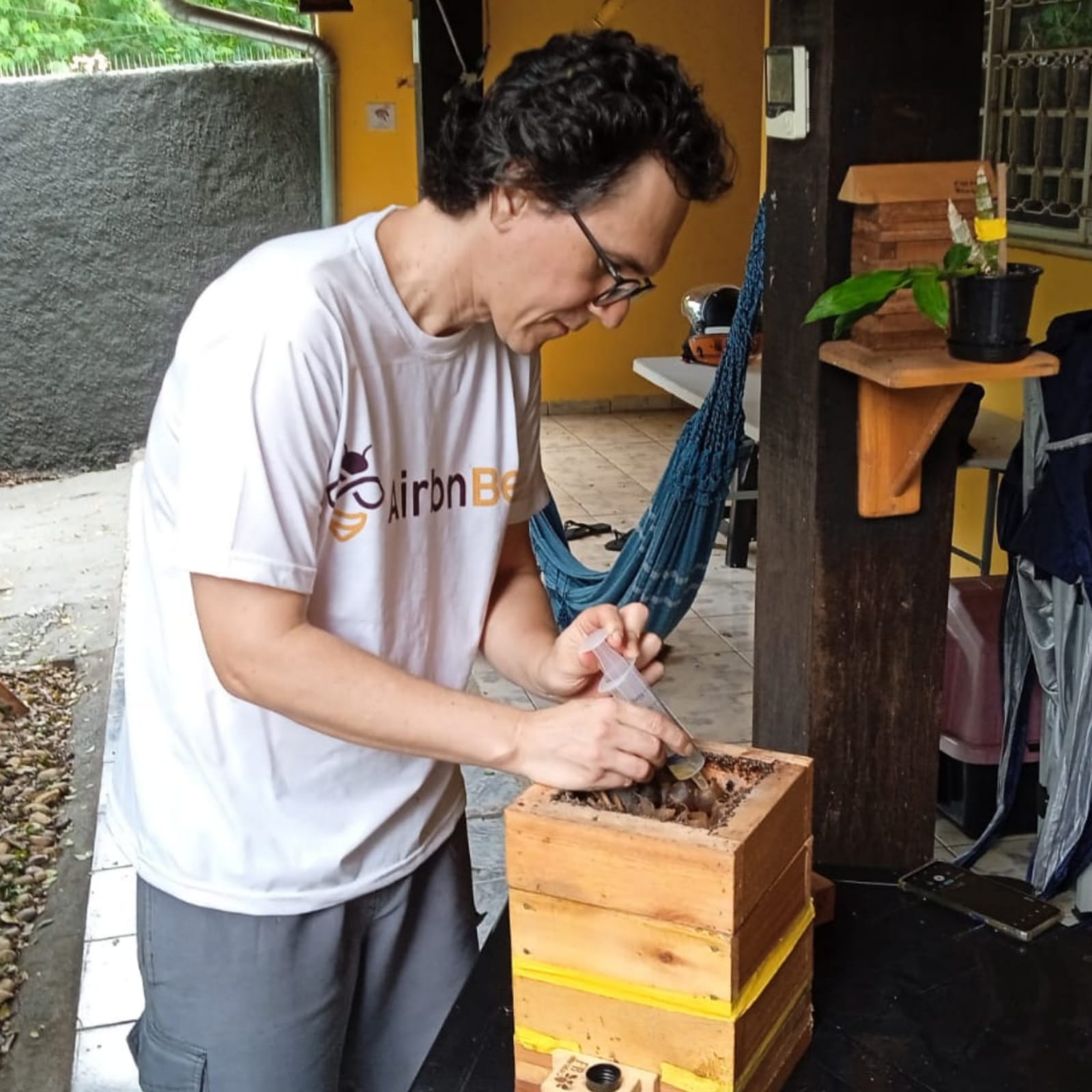 Rafaela Ribeiro, engenheira civil, levou sua filha Alice Santos, de apenas 10 anos, para participar de um workshop de férias no “Airbnbee”. Na atividade, ministrada por Aguirre, aprenderam como atrair um enxame para um ninho isca e depois transferi-lo para uma moradia permanente. E reproduziram o processo em casa.