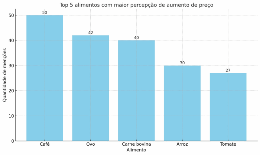 A reportagem compilou uma tabela comparando preços praticados há 12 meses com os atuais. O tomate, por exemplo, subiu de R$ 3,00 para R$ 5,61 o quilo. O café passou de R$ 6,50 para R$ 10,73, e a carne bovina de R$ 32,00 para R$ 49,28.