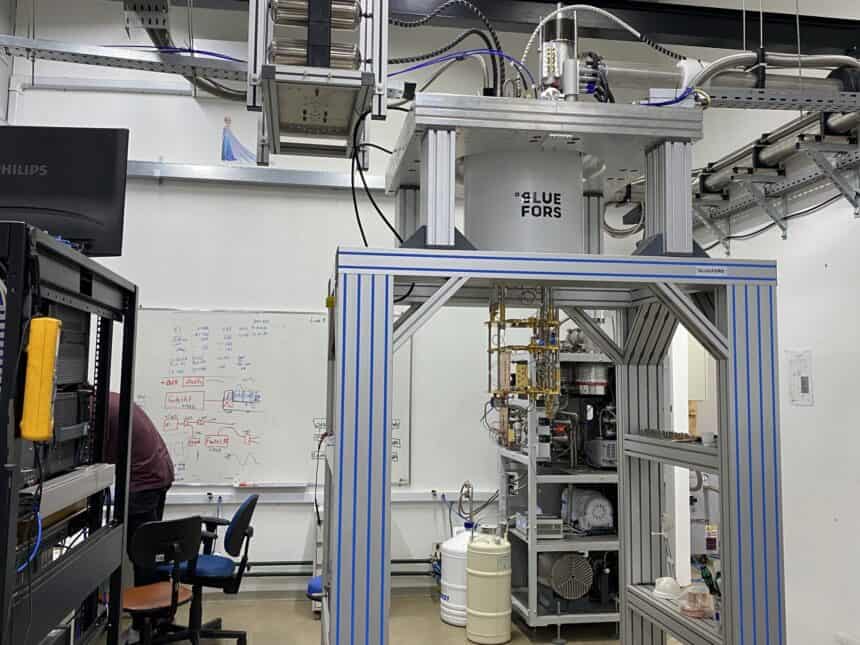 A fabricação exigiu infraestrutura de alta complexidade. O laboratório inclui sistemas criogênicos compostos por refrigeradores de diluição, capazes de atingir temperaturas próximas a -273 °C, com escudos térmicos e gaiolas de Faraday que isolam os dispositivos do ambiente externo. Para a produção dos circuitos, utilizou-se a litografia por feixe de elétrons, técnica que permite a construção de componentes em escala nanométrica. Um sistema de leitura por micro-ondas foi desenvolvido para decodificar os delicados sinais emitidos pelos Qubits.