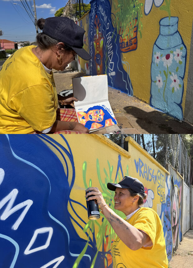 FLAGRANTE – A grafiteira Nus levou cores e mensagens de sustentabilidade inspirando alunos de Indaiatuba a repensar o uso do plástico