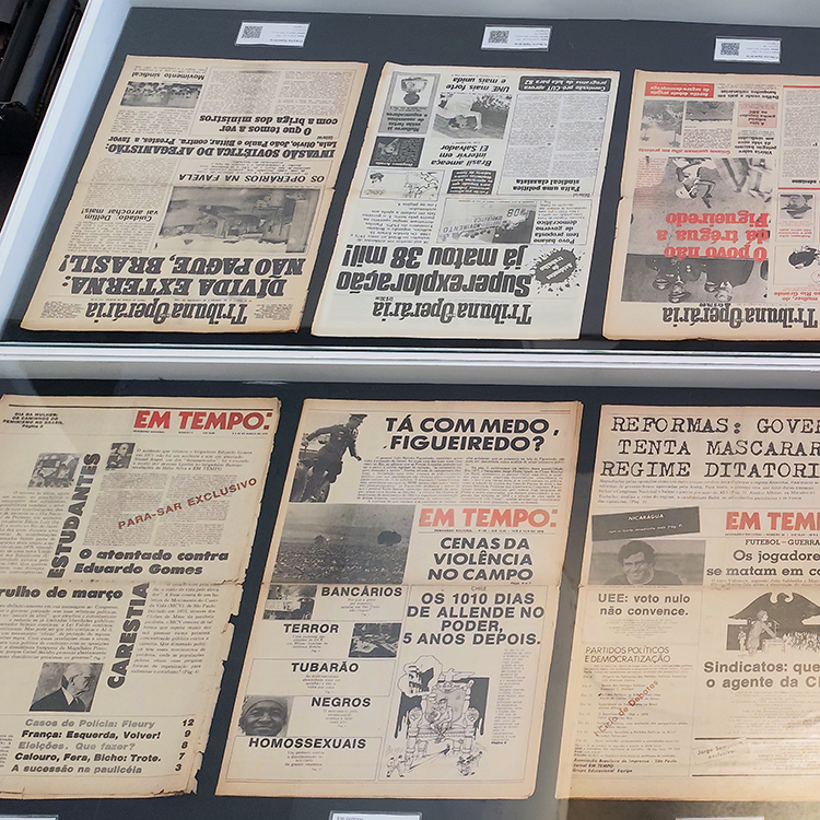 O acervo inclui 21 exemplares de jornais alternativos como Convergência Socialista, Tribuna Operária e Pasquim e narra o processo de reconstituição da democracia brasileira em diálogo com o contexto atual de ameaça à democracia desde os eventos de 2022–2023. Além da seleção de jornais para a mostra física, a curadoria se estende ao acervo digital ou sob consulta prévia e orientação para acesso ao acervo.