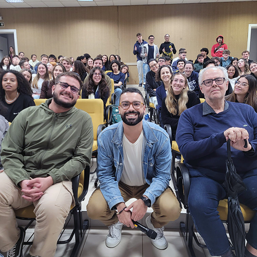O professor Artur Vasconcellos Araújo, da Faculdade de Jornalismo da PUC-Campinas, falou um pouco sobre como é receber um ex-aluno na universidade que agora é um profissional renomado. “É um grande prazer ter um ex-aluno mostrando que a sua vivência o ajudou a se desenvolver e a mostrar todo o seu potencial. Essas experiências que ele compartilhou conosco, emociona. Eu entendo que ele é um estímulo e que os caminhos estão aí e que essas experiências são muito enriquecedoras, tanto em sala de aula, nas atividades práticas, como para abrir os olhos para as coisas que podem fazer no futuro.”