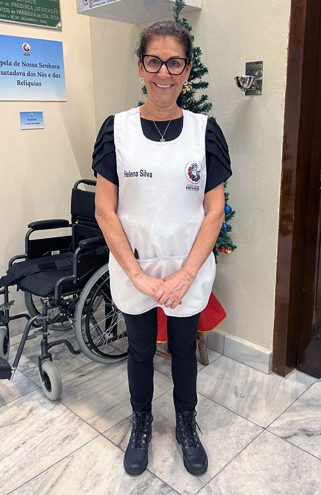 Helena Silva revelou que a devoção a Santa Rita de Cássia foi determinante para sua aproximação com a comunidade. “Eu estava procurando algo que ocupasse mais a minha vida. Comecei vindo à missa como fiel e depois fui convidada a ajudar na acolhida”, explicou. Segundo ela, o envolvimento nas atividades pastorais contribuiu para superar dificuldades pessoais. “Deixei minha ansiedade, meus pânicos e medos aos pés de Santa Rita. Ela é a santa das causas impossíveis, e todos estão convidados a participar da missa ou das pastorais”, afirmou.