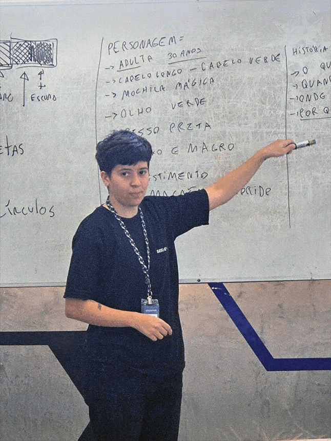Para Vinícius, a oficina é um espaço para experimentar e estimular o pensamento coletivo: “Além do desenho, trabalhamos narrativa, trabalho em equipe, pensamento em conjunto e o uso de referências”, explicou. Também ressaltou os desafios. “Em tão pouco tempo, é difícil trazer todos os elementos principais e manter o interesse. O importante é que os participantes saiam daqui querendo continuar em casa.”
