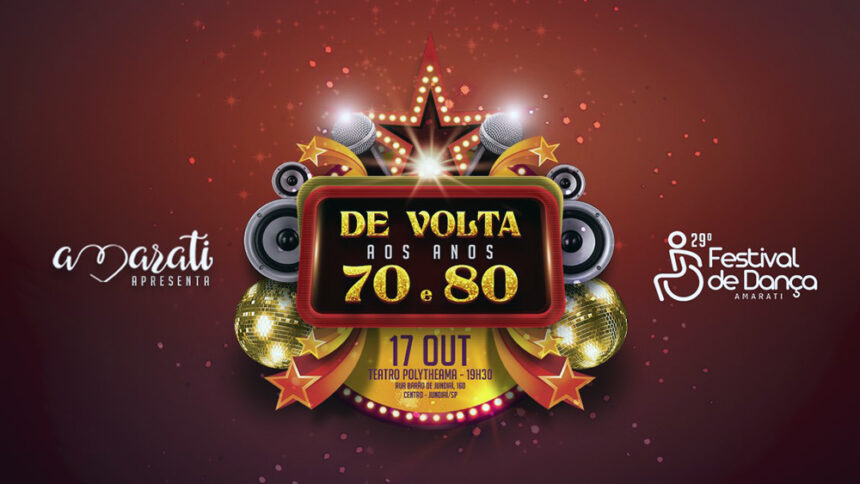 O Teatro Polytheama será palco do 29º Festival de Dança Amarati no dia 17 de outubro. Esta edição traz o tema De Volta aos Anos 70 e 80, convidando o público a reviver os grandes sucessos musicais dessas décadas em uma noite de celebração, arte e inclusão. A Amarati é uma entidade sem fins lucrativos em Jundiaí, e é reconhecida por seu trabalho com pessoas com deficiência causada por lesões neurológicas, síndromes genéticas e distrofias musculares, promovendo inserção por meio da cultura, do esporte e do lazer.