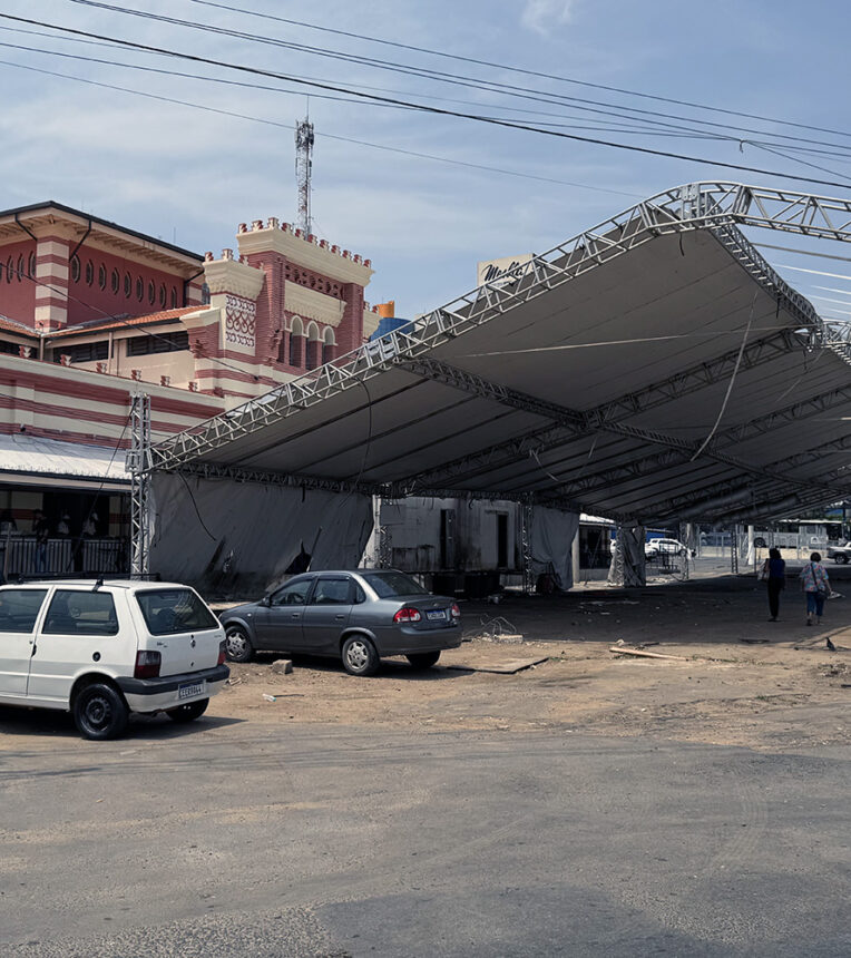 Vale destacar que o mezanino, prometido como grande atrativo, ainda não foi entregue e permanece em obras, reforçando a sensação de promessas parcialmente cumpridas. Outra cena curiosa é que o novo Mercadão segue lado a lado do velho, já que a tenda improvisada que serviu como espaço temporário ainda permanece erguida, lembrando diariamente o período de transição e os desafios enfrentados.