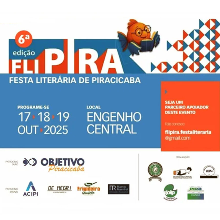 Nos dias 17, 18 e 19 de outubro, o Engenho Central de Piracicaba recebe a 6ª edição da Festa Literária de Piracicaba – FliPira. O objetivo é promover atividades culturais e literárias que aproximem leitores e escritores, criando um espaço de troca e diálogo por meio da leitura.