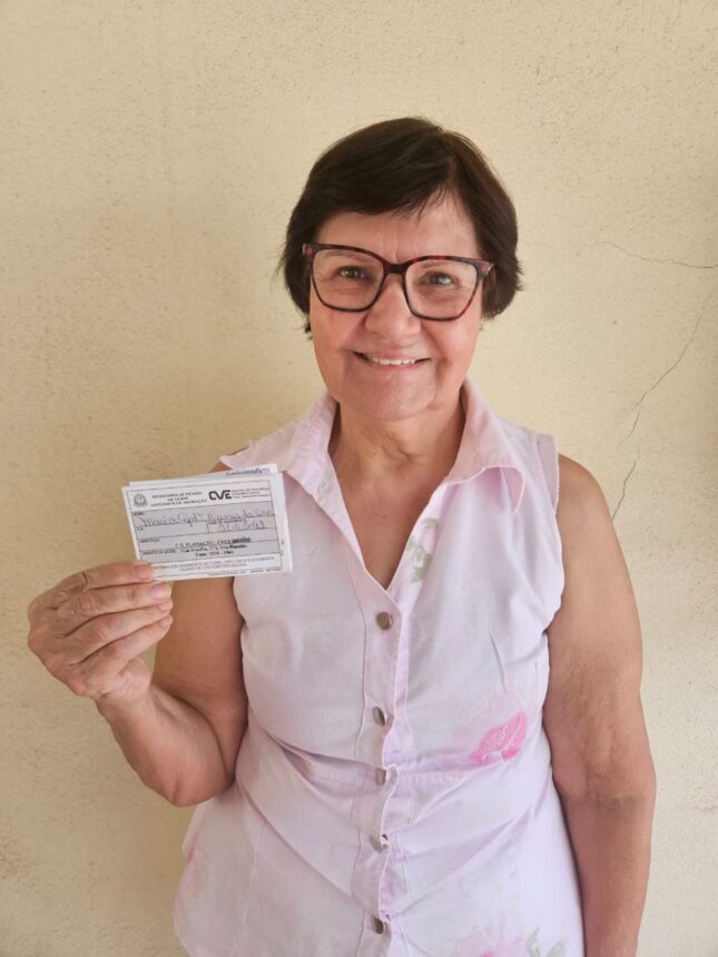 A aposentada Maria Aparecida Nunes da Silva, de 76 anos, moradora de Vinhedo, tomou recentemente a vacina contra a gripe. “Fiquei sabendo pela televisão e por amigas que foram se vacinar”, contou. Maria se vacina todos os anos para prevenir doenças, especialmente pela idade. “Faço isso para poder realizar meus afazeres dentro de casa sem ficar doente”, relatou.