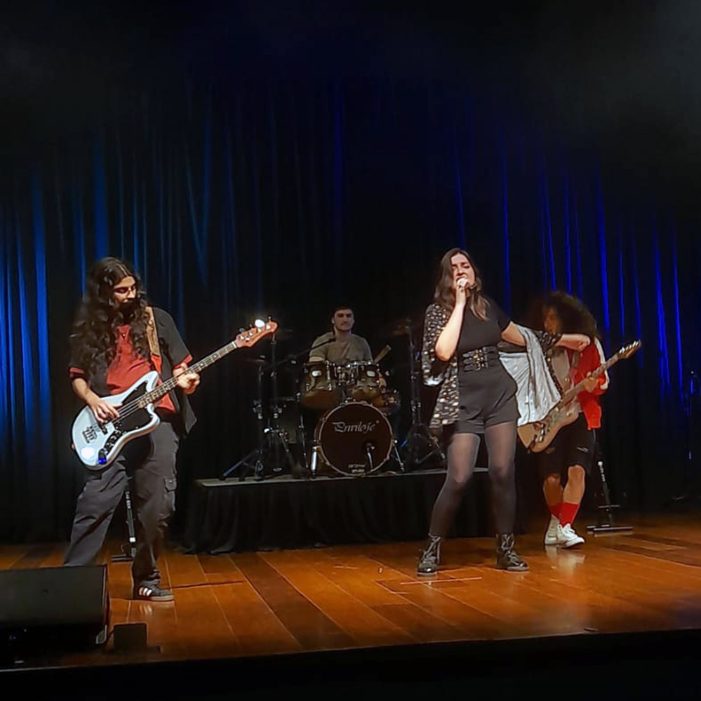 Nicole Belanoce, estudante de Enfermagem // guitarrista Pietro Menezes // vocalista Mariana Oils