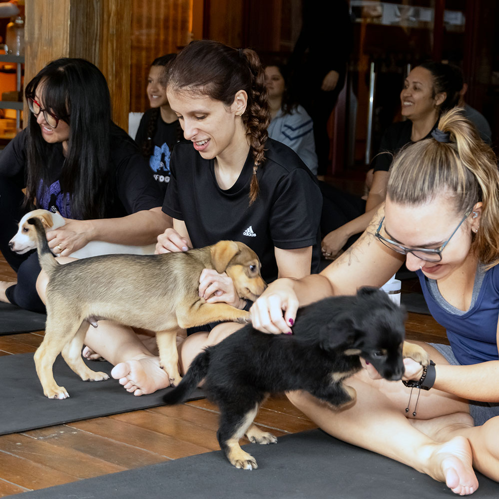 Os filhotes que participam das aulas são escolhidos pelas instituições parceiras e acompanhados por voluntários durante todo o encontro. A atividade trabalha respiração, mobilidade e foco, fortalecidos pelo contato com os cães. As aulas são preparadas para iniciantes, não têm restrições de idade ou experiência e pedem apenas cuidados básicos, como higienizar as mãos e retirar os sapatos antes de entrar no espaço.