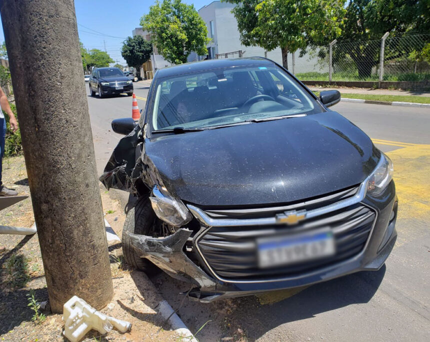 Um acidente foi registrado na manhã desta terça-feira, dia 11/11, na Avenida Maranhão, em Jaguariúna. A motorista teria adormecido ao volante, perdeu o controle da direção, derrubou uma placa e colidiu contra um poste. No carro estavam a condutora e sua mãe idosa, que foi amparada por pessoas que trabalhavam em um escritório próximo e ouviram a batida. Ambas tiveram apenas ferimentos leves e receberam atendimento médico. (Pedro Rabetti)