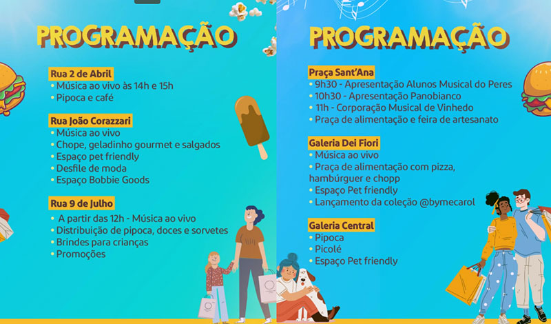 Vai ter música ao vivo, comidinhas, apresentações culturais, ações promocionais e programação para toda a família