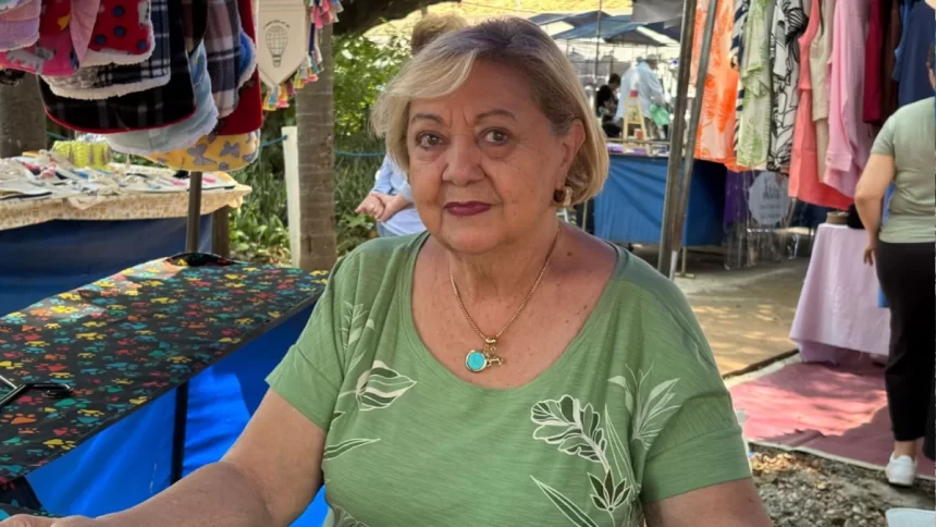 Vera Lúcia, 82 anos e feirante há 26, emociona-se ao falar do impacto comunitário: “O que ela faz pela gente não tenho palavras, tenho vontade até de chorar”, conta.