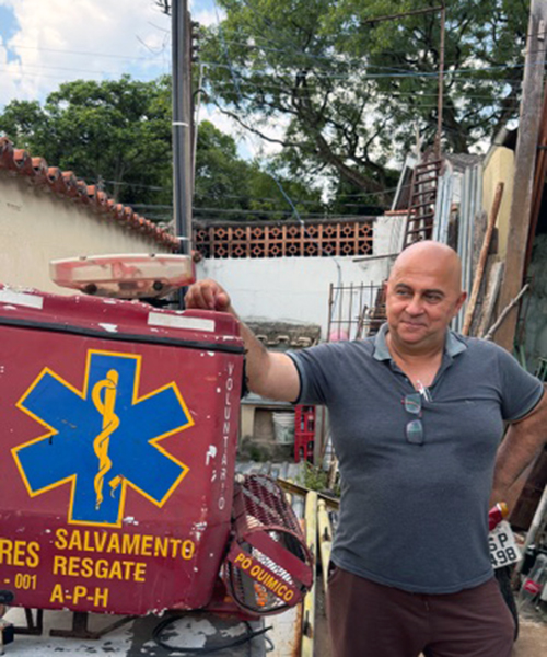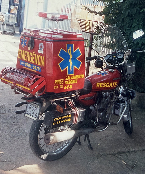 Voluntário desde os anos 1980, Fernando Pires é o criador da Moto Resgate, iniciativa que nasceu da urgência de atender pacientes acamados e vítimas de acidentes em Campinas. Depois de anos se deslocando a pé, de carona ou até de carroça, ele percebeu que precisava de autonomia e transformou uma moto usada em unidade de primeiros socorros.