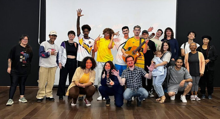 Elenco completo do Nascente Musical, com artistas, equipe técnica e colaboradores reunidos após etapa de ensaio e criação coletiva (Foto: Divulgação)
