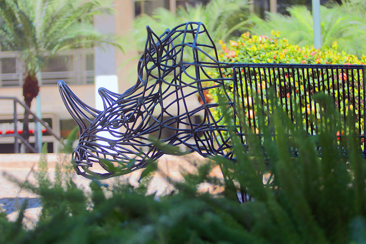 Criada pelo artista plástico João Caçador, a escultura denominada Rinoceronte Vestido de Banco, tem embelezado a cidade e divertido os moradores de Campinas. A obra é uma peça utilitária. Ao transformar a imponência e a força bruta de um rinoceronte em um objeto de descanso, Caçador estabelece um diálogo irônico e gentil entre o selvagem e o funcional.