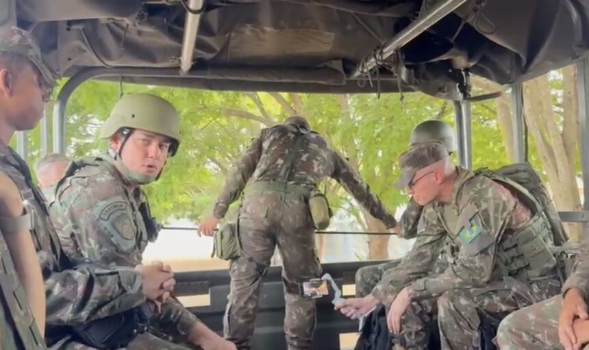 Militares do 11º Batalhão de Infantaria Mecanizada em simulação de operação (Foto: Raquel Piveta)