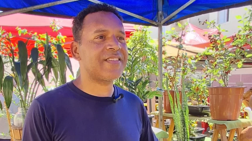 Joselino Lima Farias vende plantas e utensílios para jardinagem há seis anos. O feirante relata que por se tratar de uma feira tradicional, com cerca de 40 anos de história, a relação de comerciante e cliente se torna amizade.