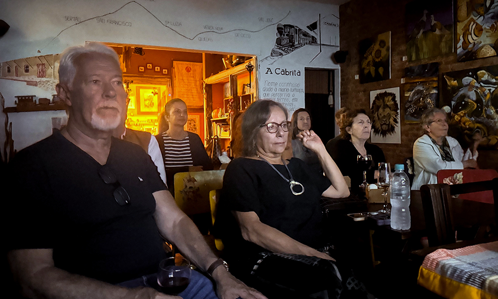 Dependendo do clima, a sessão acontece no jardim do café, sob as árvores, ou dentro da casa. Na sala, uma longa mesa reúne todos os participantes. Muitas vezes, as pessoas se sentam ao lado de desconhecidos, mas o silêncio nunca dura muito. Depois do filme, a conversa começa naturalmente. “Gostei muito dessa cena”, comenta alguém. “Eu chorei nessa parte”, diz outra pessoa. “A forma como o diretor filmou esse momento é incrível.”