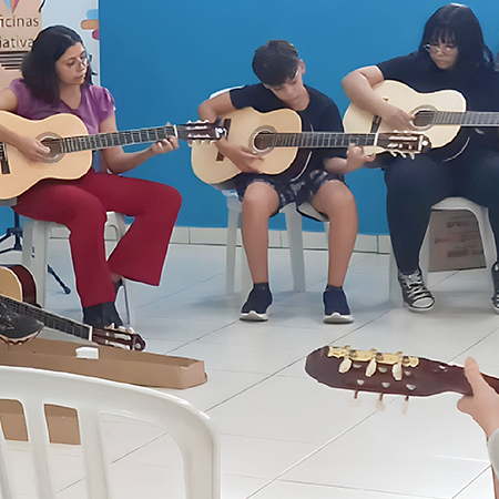 O espaço realiza gravações musicais e dá aulas de guitarra gratuitas