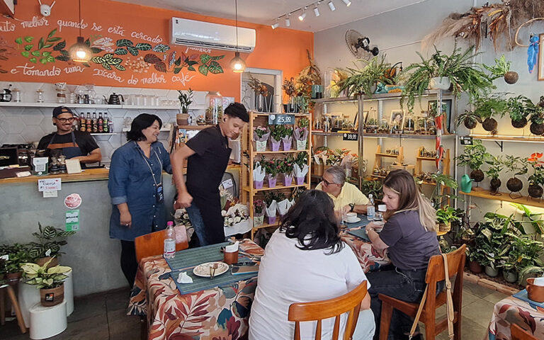 Refúgio contra a agitação da cidade une café e muitas plantas